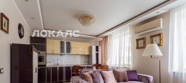 ID 41522. Просторная 2-комнатная квартира, расположенная в ЖК "Дом на Беговой". В квартире выполнен стильный ремонт с использованием высококачественных материалов. Интерьеры дополнены комфортной итальянской мебелью и дорогостоящей бытовой техникой известных брендов. В оформлении элегантных общественных зон использованы зеркальные панели и оригинальные декоративные кованые элементы. Общая площадь: 70 кв. м. Планировка: просторная гостиная, кухня, спальня, ванная комната. Из окон открывается потрясающий панорамный вид на Москву. Фасад жилого комплекса отделан натуральным гранитом, установлено витражное остекление. На огороженной охраняемой придомовой территории организована стихийная парковка. Жилой комплекс расположен всего в 2 минутах ходьбы от станции метро "Беговая", прекрасная транспортная развязка. В непосредственной близости множество знаменитых ресторанов, магазинов и фитнес-клубов.