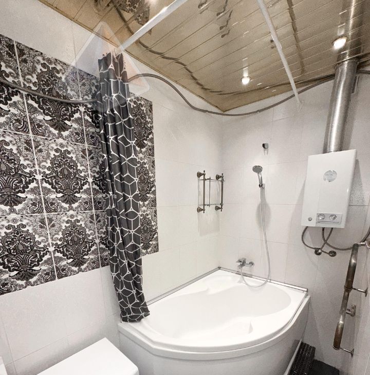 • Кухня 910 м² с полной комплектацией: духовой шкаф, газовая плита, микроволновая печь, бойлер — гастрономия как удовольствие, а не обязанность