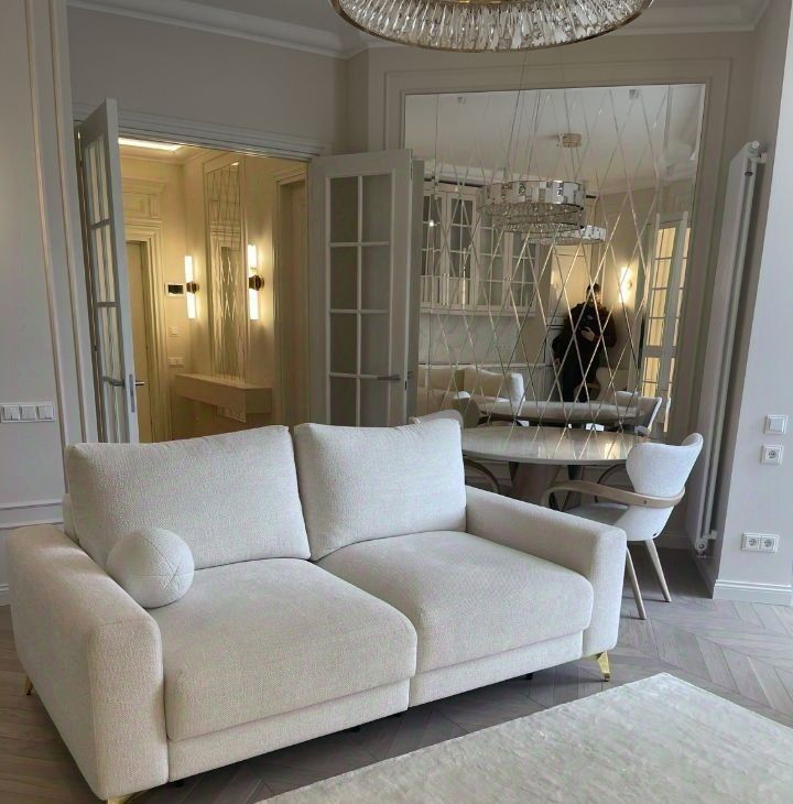 Уютная, светлая 2-к квартира (евро двушка) с дизайнерским ремонтом на 19-ом этаже с видом на красивый, тихий двор. Квартира оборудована качественными строительными материалами , новой мебелью и премиальной техникой (ASKO, SMEG, Samsung).