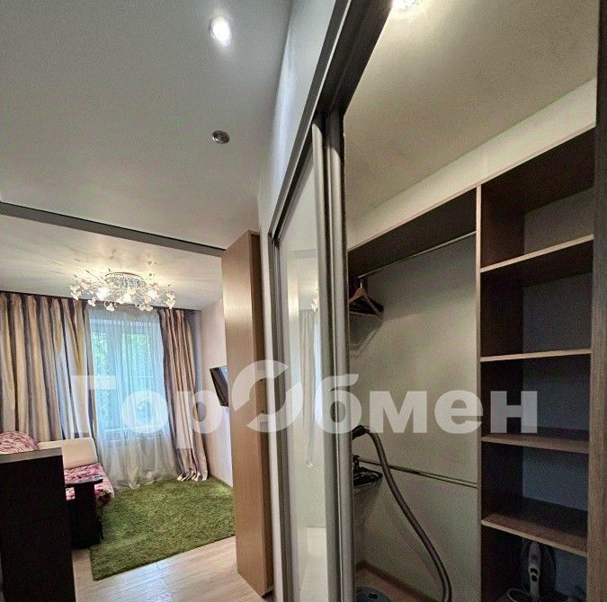 Планировка включает в себя гостиную, объединенную с кухней, изолированную спальную комнату, гардероб, совмещённый санузел и остеклённый балкон с видом во двор.