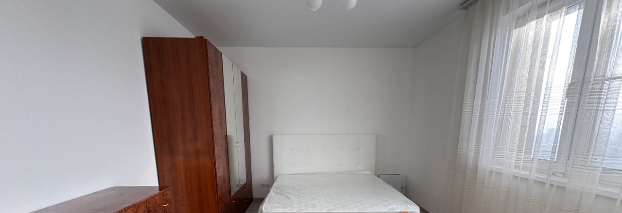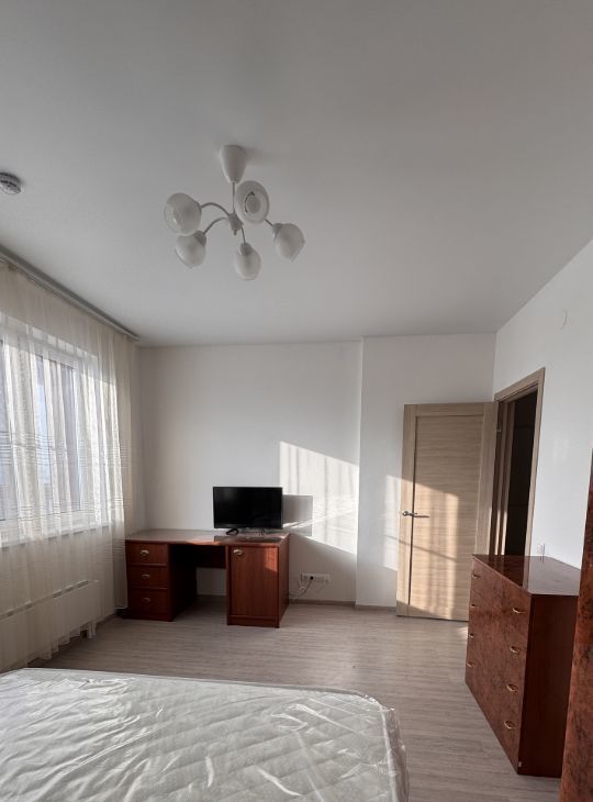 - Мебель для комфортного проживания: двуспальная кровать с НОВЫМ пружинным матрасом (Орматек), шкаф, комод, рабочий стол.