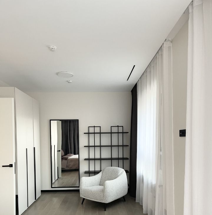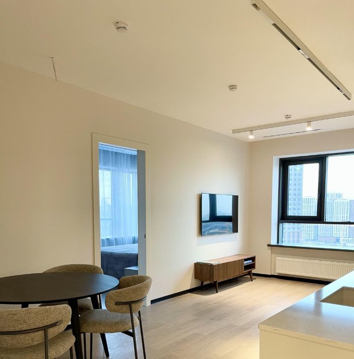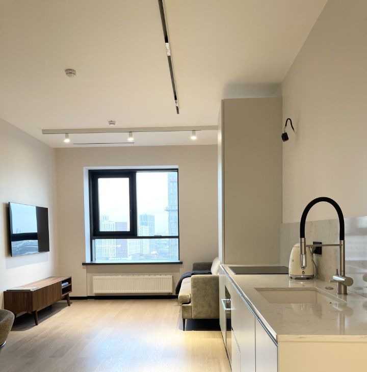 Квартира полностью готова к комфортному проживанию. Много мест хранения, разные сценарии освещения, натуральные материалы в отделке. В наличии вся необходимая мебель, включая кухонный гарнитур и мебель в комнатах. Из техники: кондиционер, холодильник, посудомоечная машина, телевизор и стиральная машина с функцией пара. Установлен измельчитель отходов, фильтр очистки воды, есть чайник, посуда и другие мелочи для жизни. Ванная комната оборудована ванной, что позволяет расслабиться после рабочего дня.