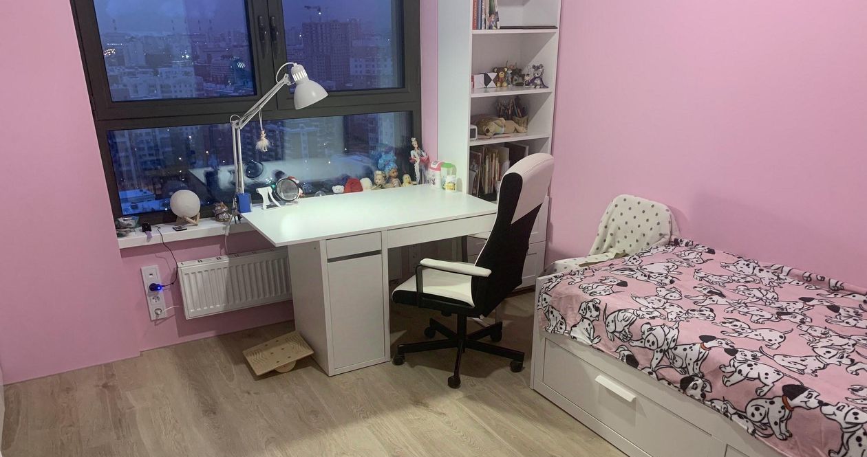 - в детской шкаф-купе, кровать, письменный стол, туалетный столик с зеркалом;