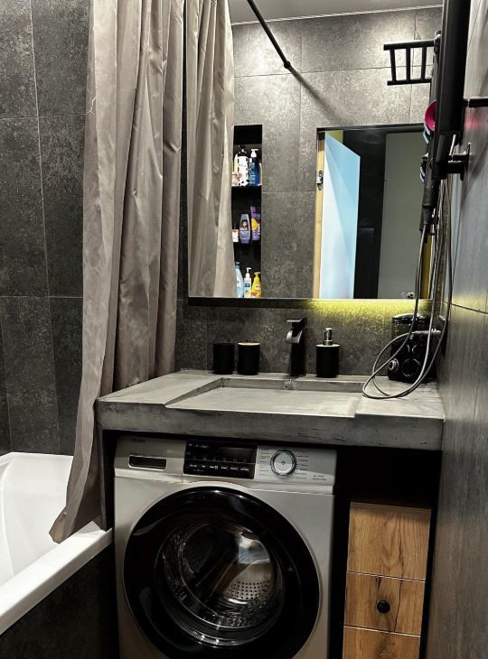- стиральная машина в ванной. Водоснабжение и отопление от центральных городских коммуникаций.