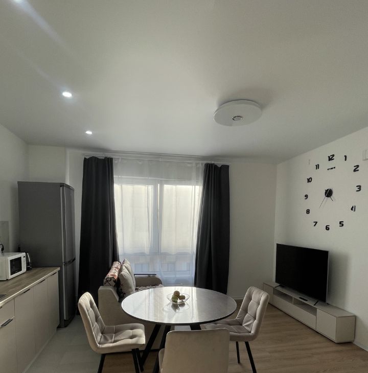 Квартира только после сдачи дома, полностью меблирована и все новое. В наличии вся необходимая техника: холодильник, телевизор, стиральная машина, чайник, СВЧ. Планировка предусматривает два раздельных санузла, а окна выходят во двор, что гарантирует тишину и покой. В ванной комнате установлена ванна, поэтому можно расслабиться после насыщенного дня.