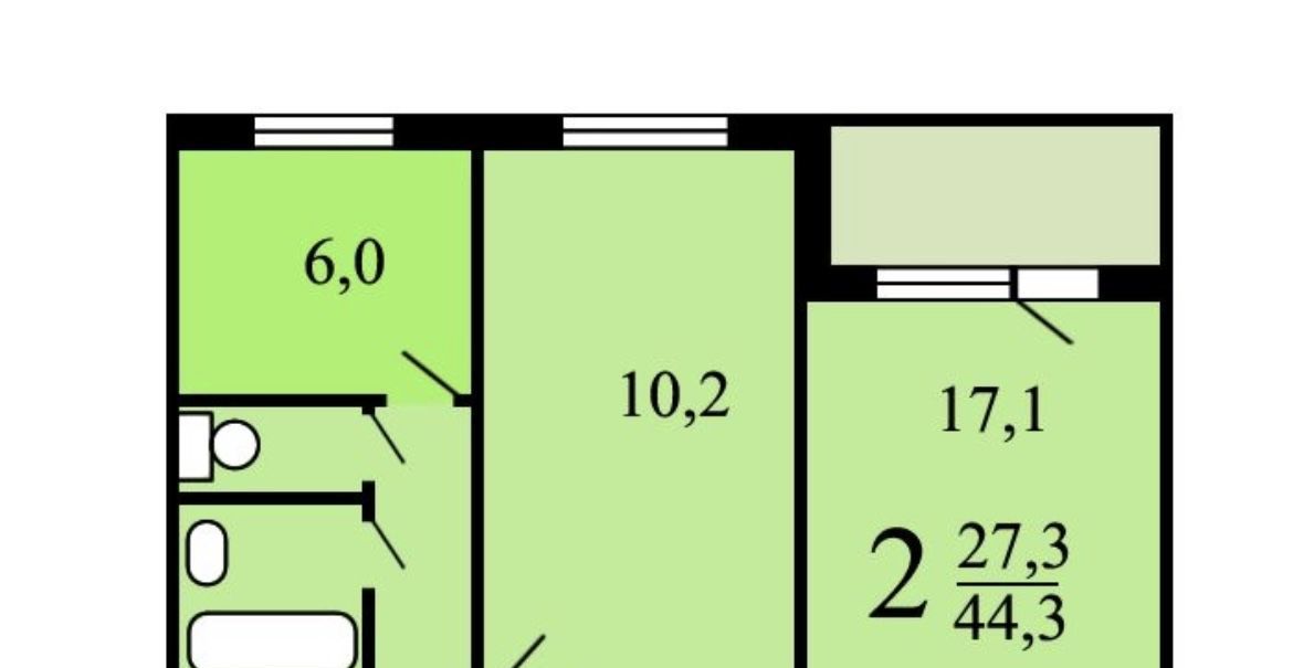 2-к кв. Москва Инженерная ул., 9 (44.0 м²)