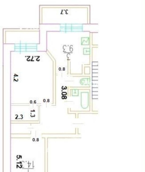 Кухня 9.3 м2, жилая площадь 33,6 м2, санузел раздельный.