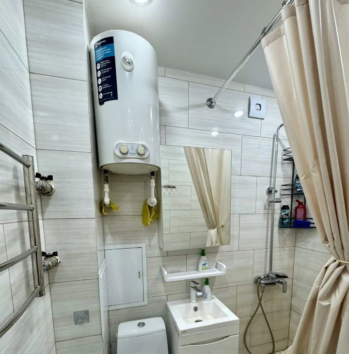 Санузел совмещенный, душевая кабина евростандарт, бойлер.