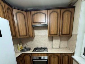 - две изолированные комнаты: спальня (двуспальная кровать, рабочее место, шкаф, комод) и большая комната (раскладной диван, телевизор с тумбой ,шкаф)