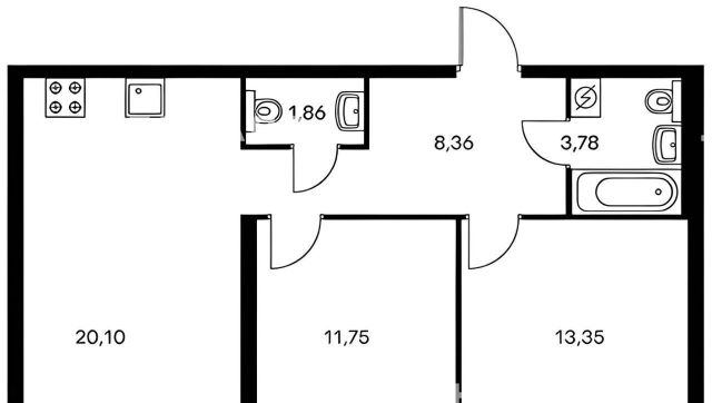 Общая площадь — 61,1 м², изолированные комнаты
