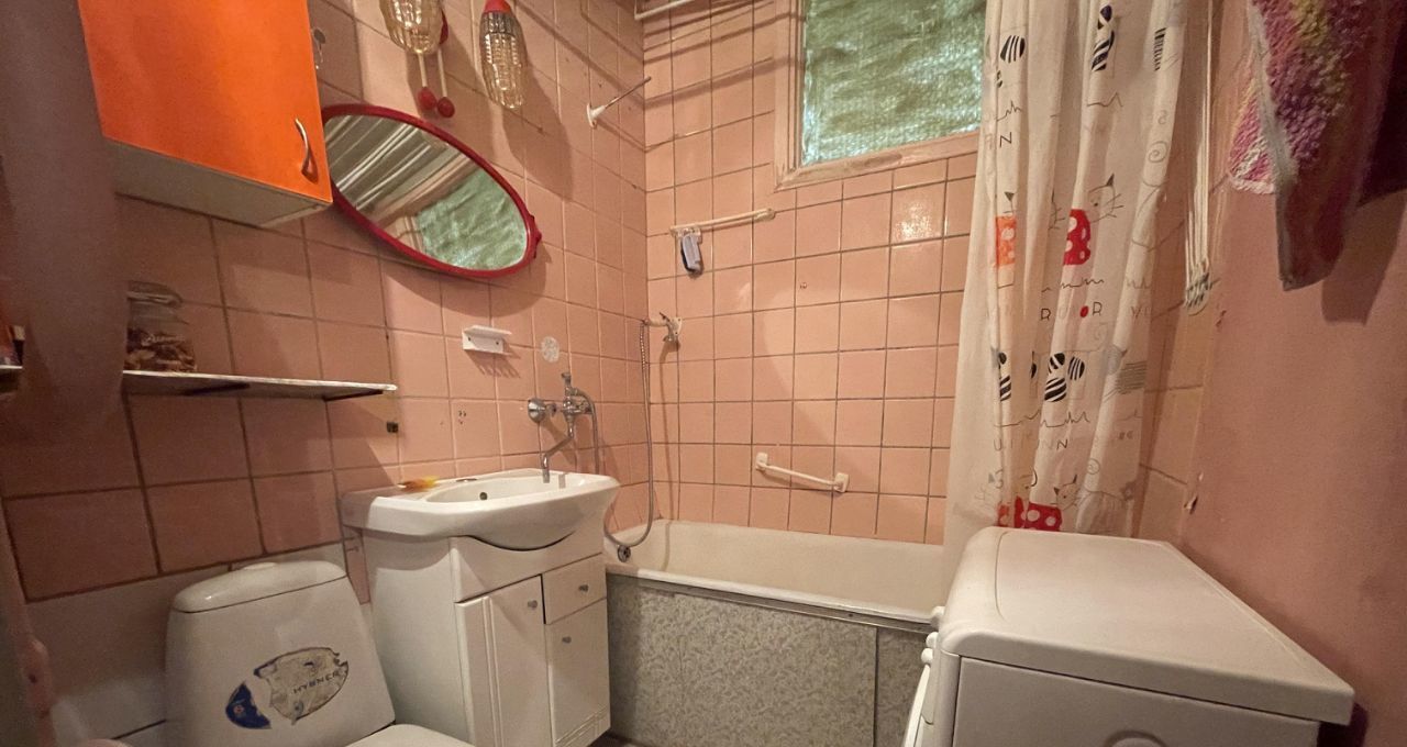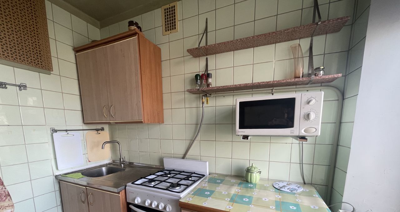Кухонный гарнитур с бытовой техникой. Санузел совмещенный.