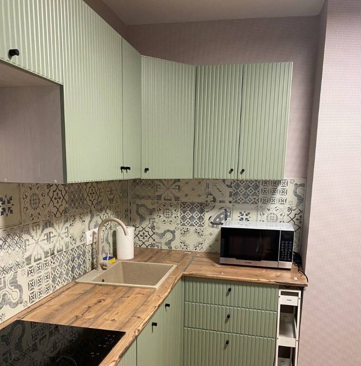На кухне: холодильник, микроволновая печь с грилем, 3-х конфорочная индукционная плита, посудомоечная машина.