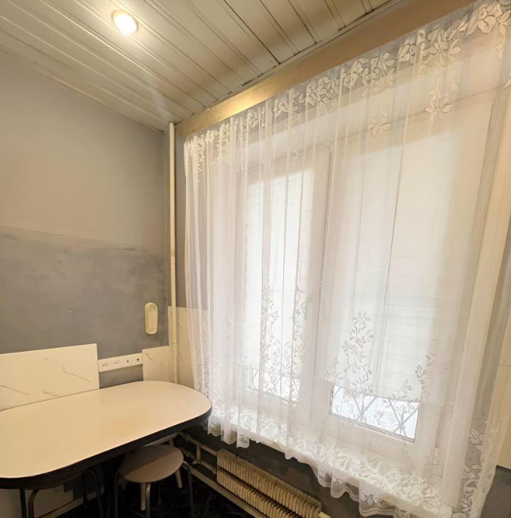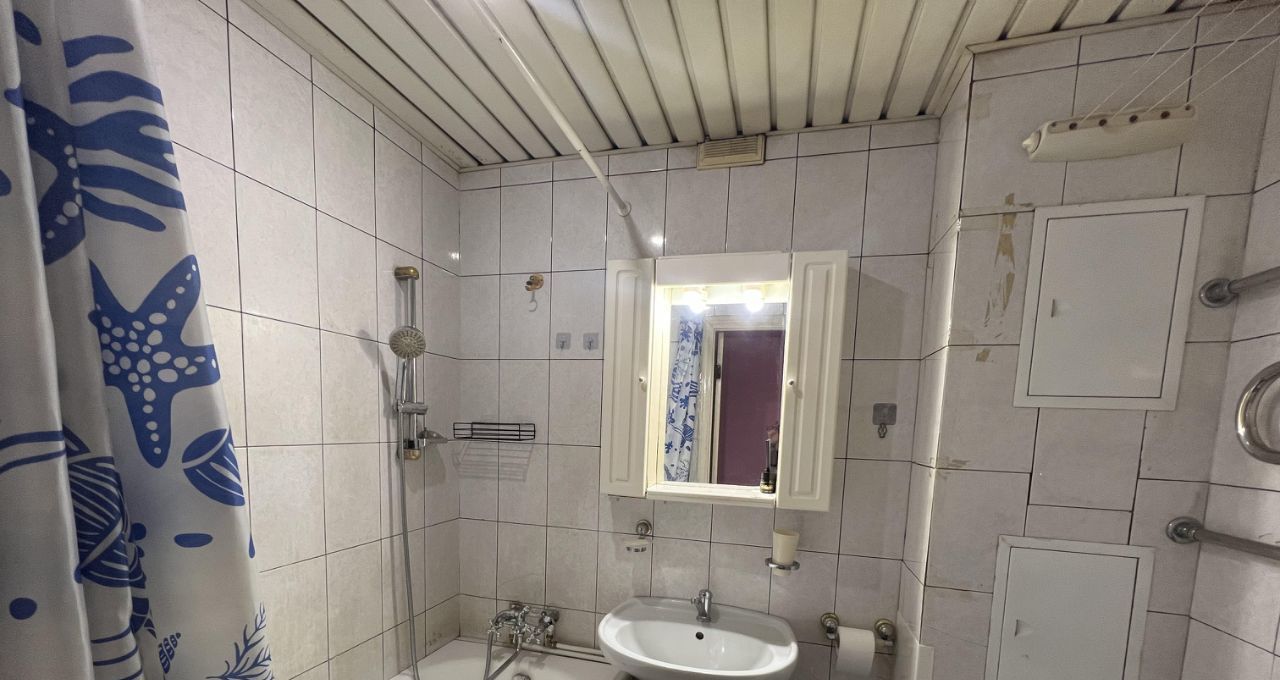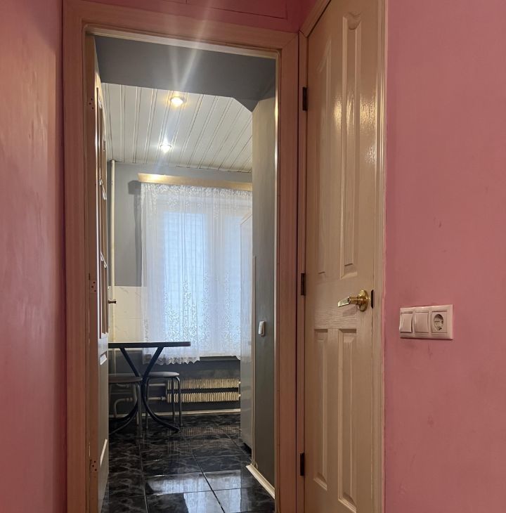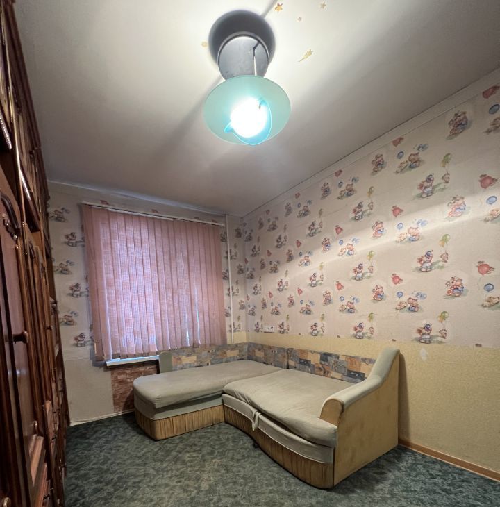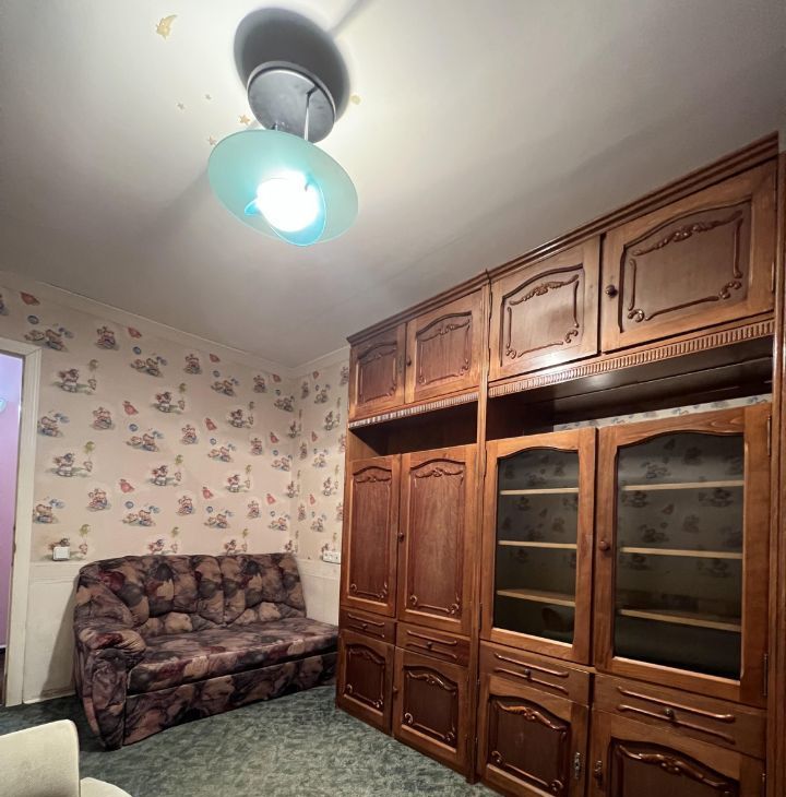 Квартира находится на первом (1) этаже 9-этажного дома. Комнаты изолированные 18, 8+11, 6 кв. м; кухня 6, 3. Санузел совмещенный. Лоджии или балкона нет. Плита газовая на две конфорки, духовки нет. Окна высокие. На окнах решетки. Окна выходят во двор, в квартире тихо. Квартира очень теплая.