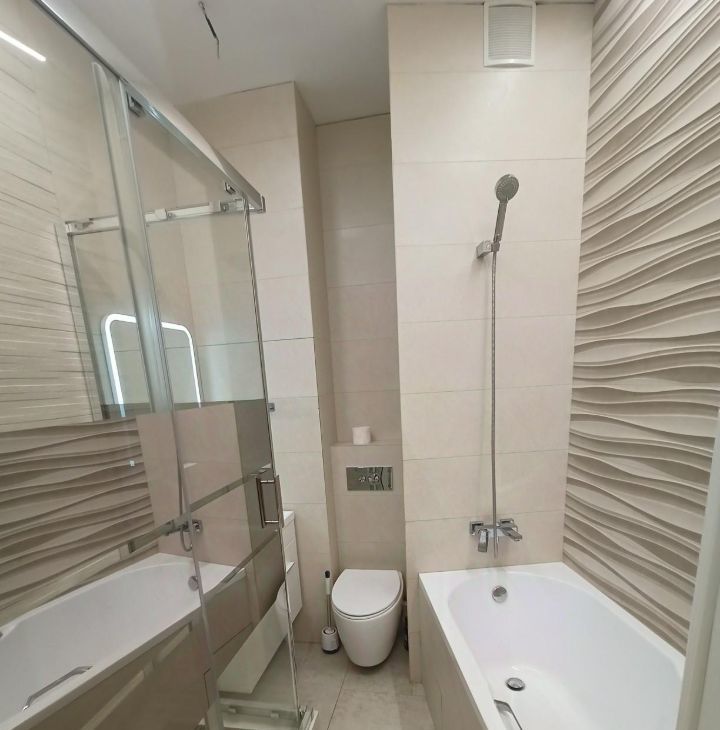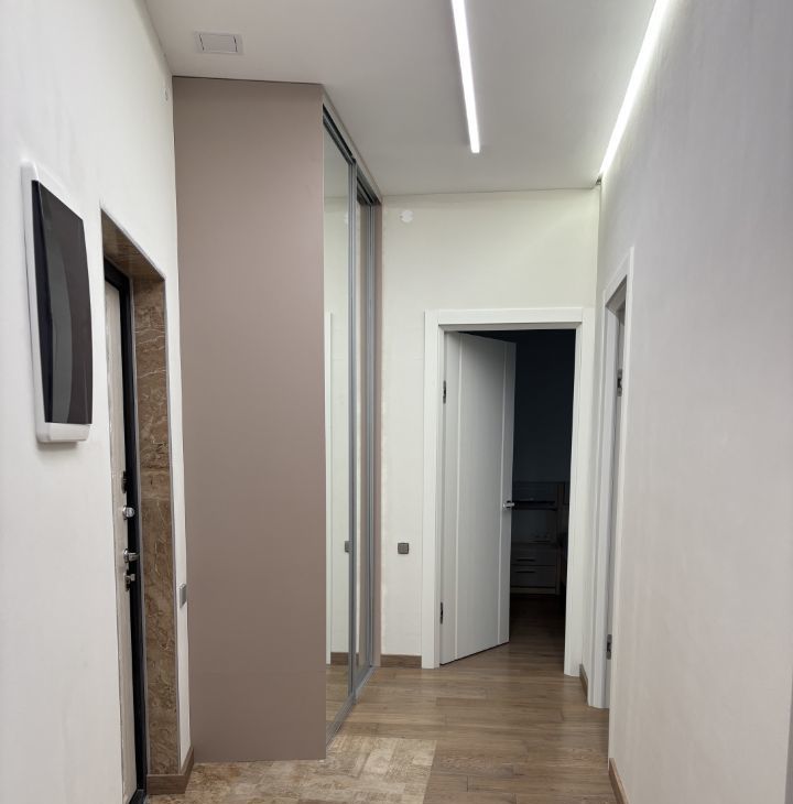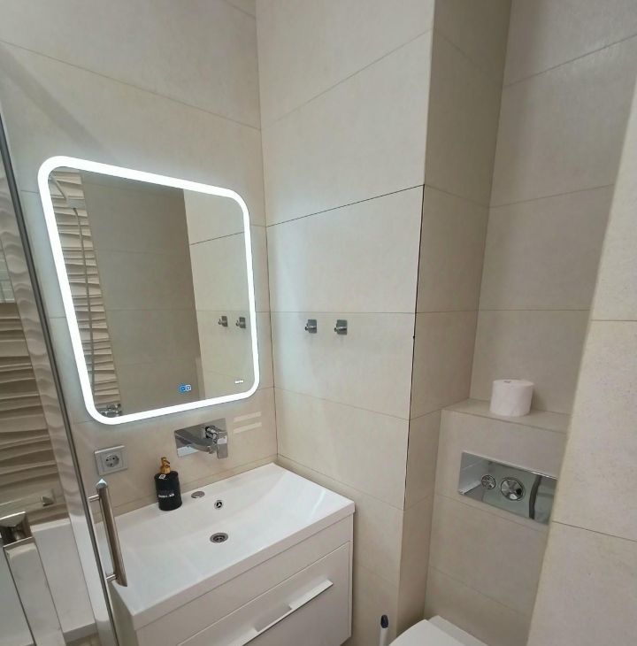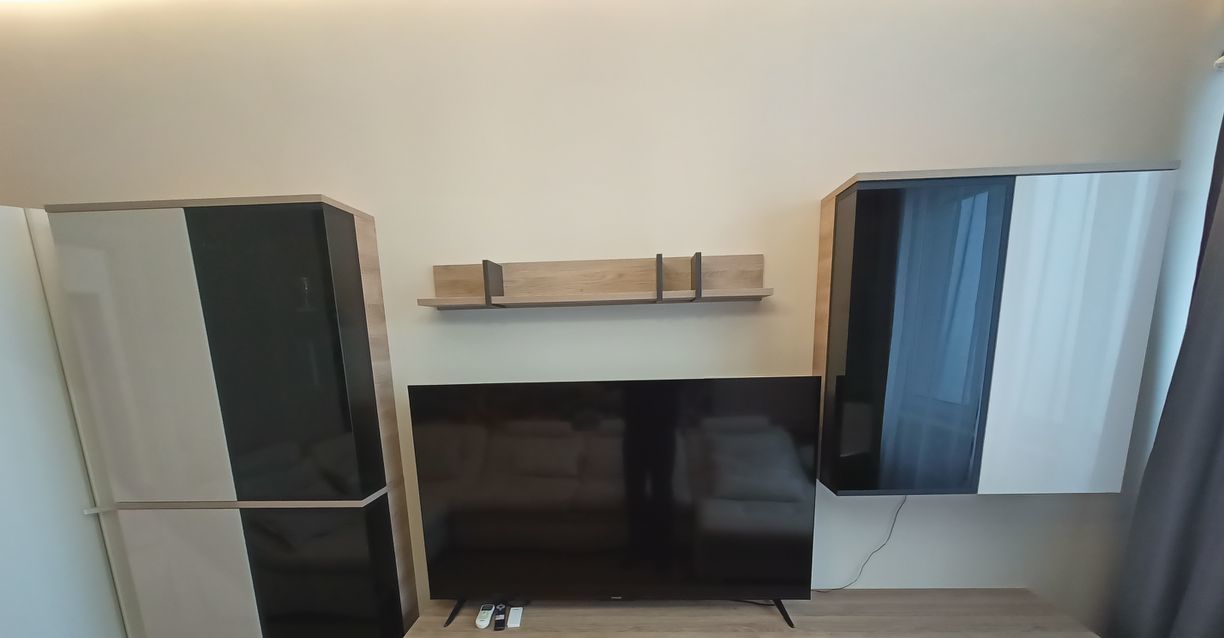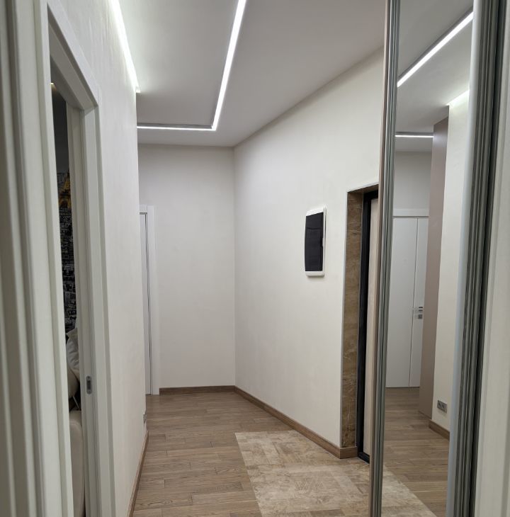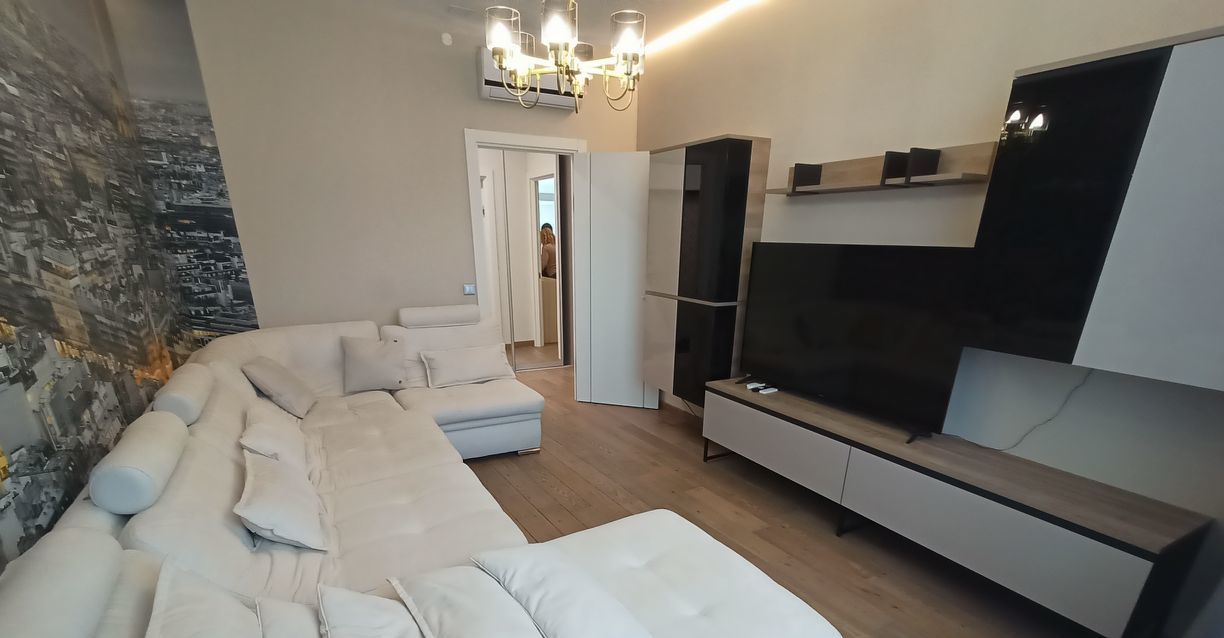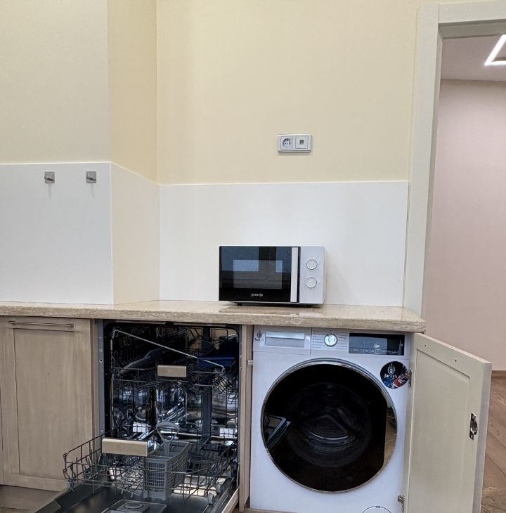 В квартире выполнен качественный евроремонт. Квартира оборудована всей необходимой мебелью и техникой: кондиционеры, холодильник, посудомоечная и стиральная машина, микроволновая печь, телевизор.