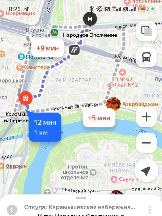 До м.Народное Ополчение БКЛ 12 мин пешком
