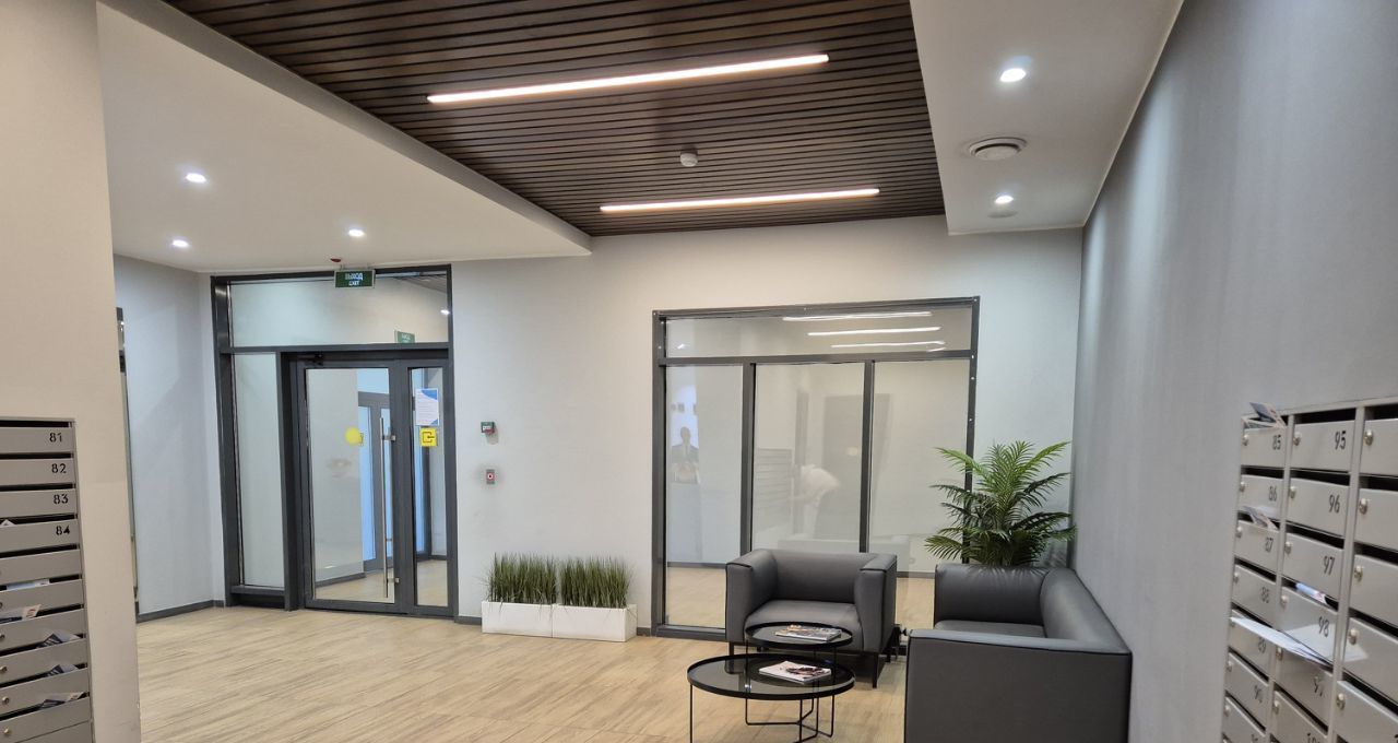 Очень развитая инфраструктура: кафе, аптеки, банки, магазины,детские сады и школы.системы хранения. Рядом парк и дорожки: бега, занятий спортом.