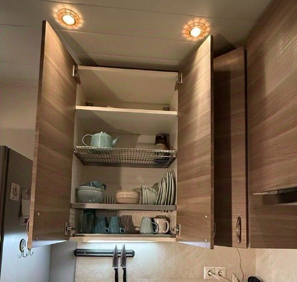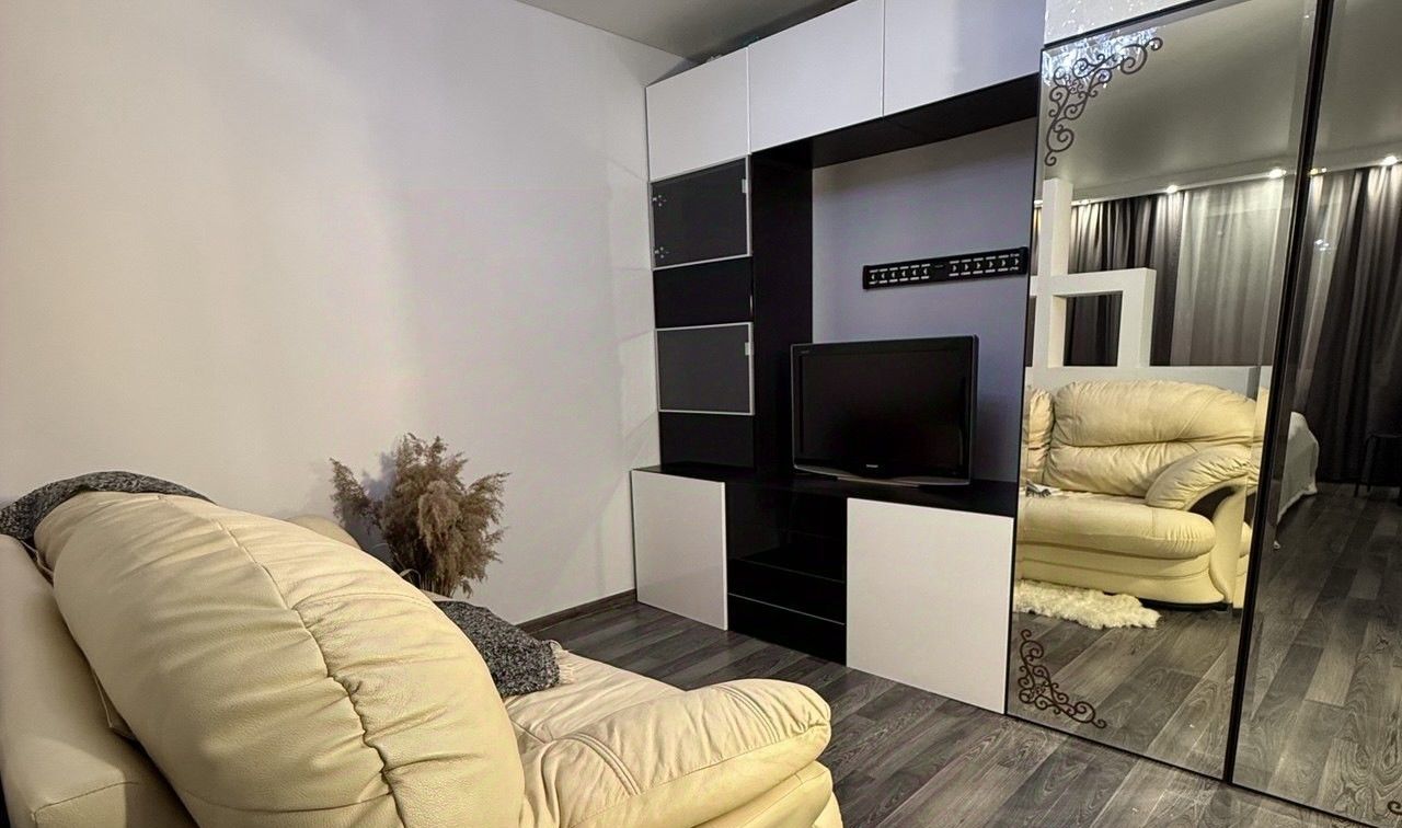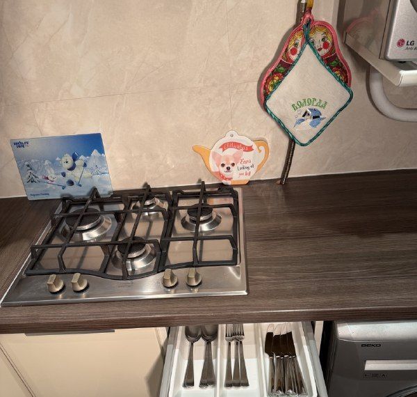 В большой комнате диван, двуспальная кровать, стол и вместительная стенка. Вторая комната укомплектована только шкафом. При необходимости готовы установить раскладной диван. На кухне холодильник, свч, духовой шкаф, варочная панель, электрический чайник, вытяжка, посуда, аэрогриль. Также из техники: телевизор, утюг, пылесос, стиральная машина. Есть сушилка и гладильная доска. В квартире проведён интернет.