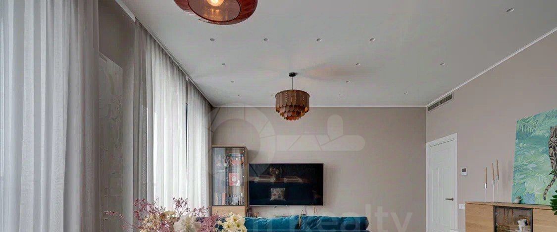 В квартире две изолированные спальни и просторная кухня-гостиная, отдельная гардеробная и современная ванная комната. Из окон открывается прямой и открытый вид на парк и Мазиловский пруд!