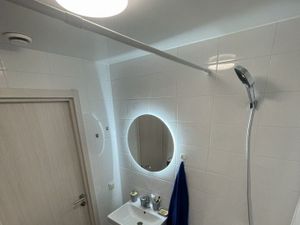 Большой шкаф в спальне и в коридоре. Входная дверь с хорошей шумоизоляцией и зеркалом во весь рост. Диван раскладывается в дополнительное спальное место.