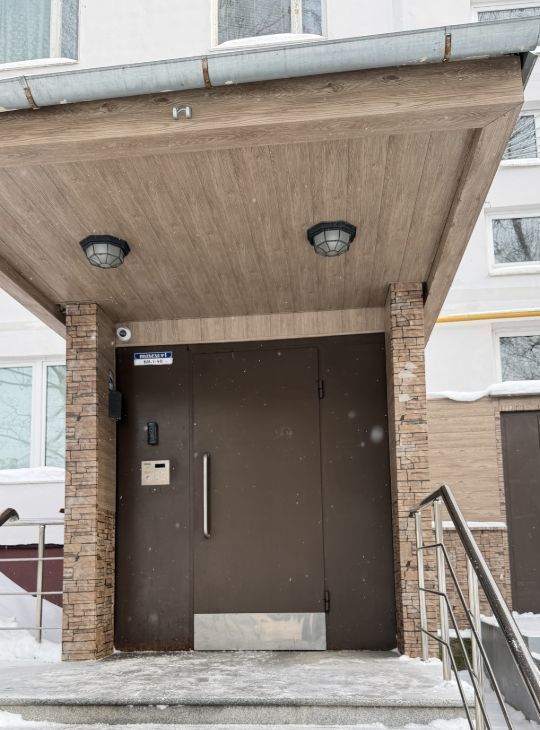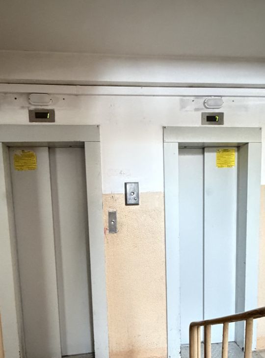 Дом в хорошем состоянии, оборудован двумя пассажирскими лифтами и мусоропроводом. Для автомобиля предусмотрена наземная парковка во дворе с шлагбаумом.