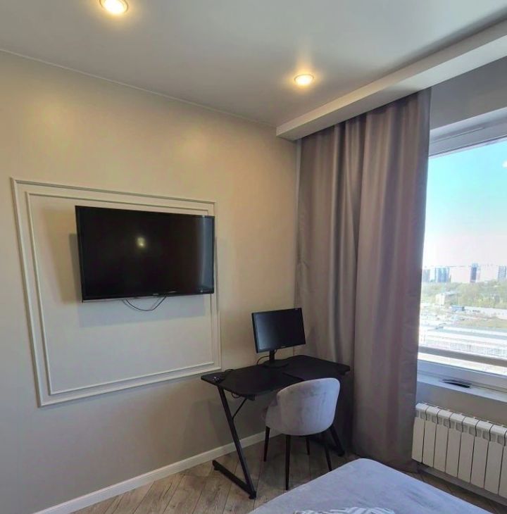 Сдается современная двухкомнатная квартира с дизайнерским ремонтом. Квартира расположена на 23-м этаже 30-этажного здания, отличный вид на Москву.... Высокие потолки 2.8 метра и окна, выходящие на улицу, делают пространство светлым и просторным. До станции метро Грачёвская всего 8 минут пешком.Квартира полностью меблирована, в комнате и на кухне есть все для комфортного проживания. Установлена современная техника: кондиционер, холодильник и стиральная машина. В ванной комнате душевая кабина, есть резервный подогреватель воды.Дом оборудован подземной парковкой, что особенно удобно для автовладельцев. В здании работают три пассажирских и один грузовой лифт, поэтому можно быстро добраться до квартиры. Интернет уже подключен, а значит, вы всегда будете на связи.