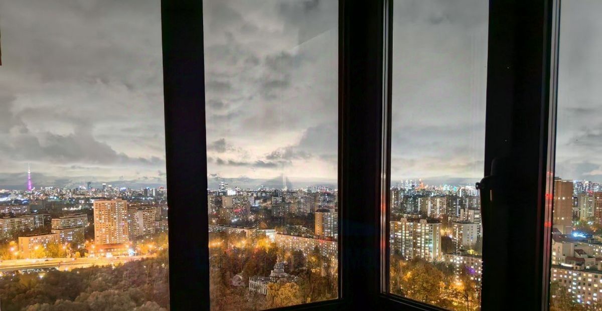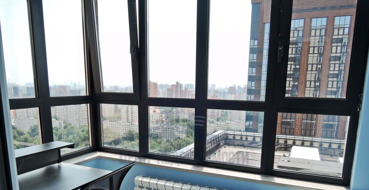 6) ПРОСТОРНАЯ И УТЕПЛЁННАЯ ЛОДЖИЯ-КАБИНЕТ панорамные окна, свежий воздух, вид на Грачевский парк, Останкинскую башню и Москва-Сити.