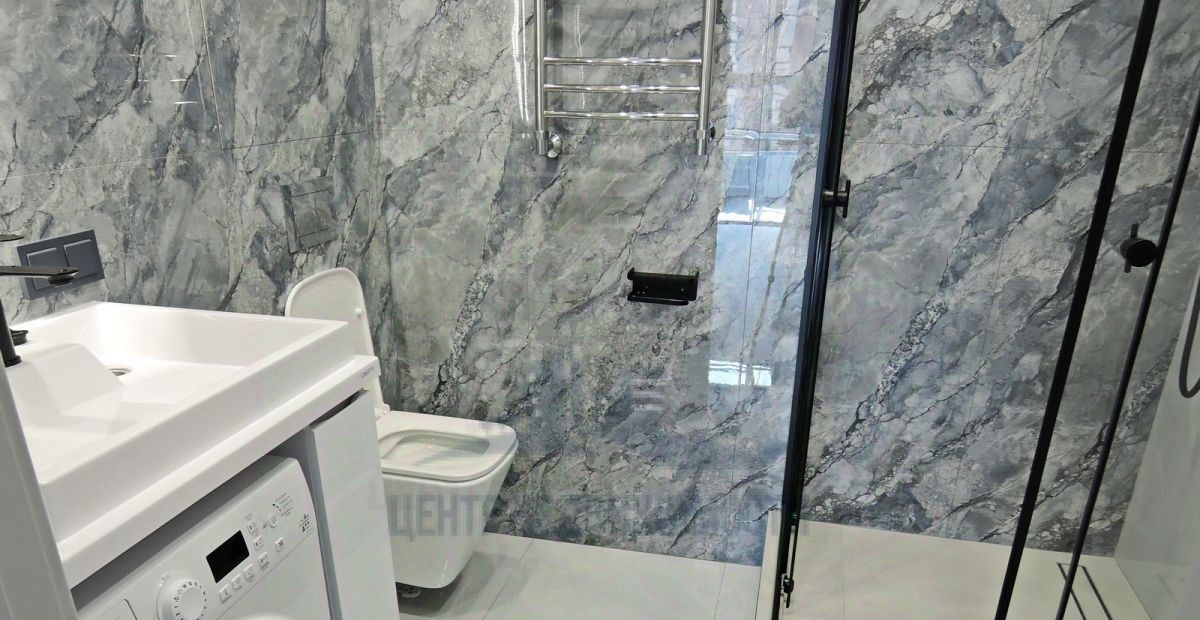 5) СОВРЕМЕННЫЙ САНУЗЕЛ с тёплым полом, системой защиты от протечек и унитазом-биде с подогревом воды.