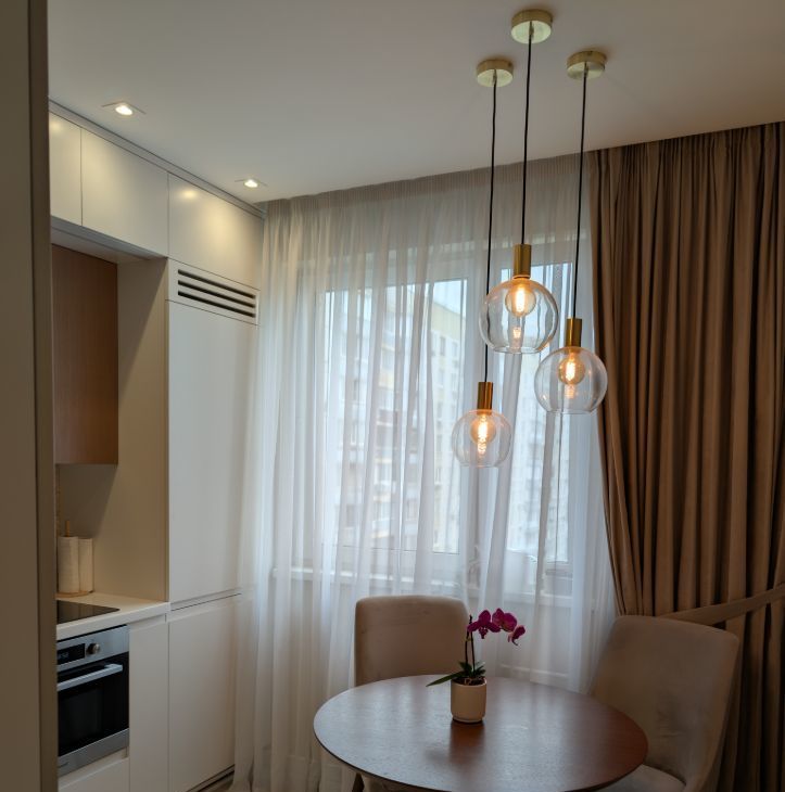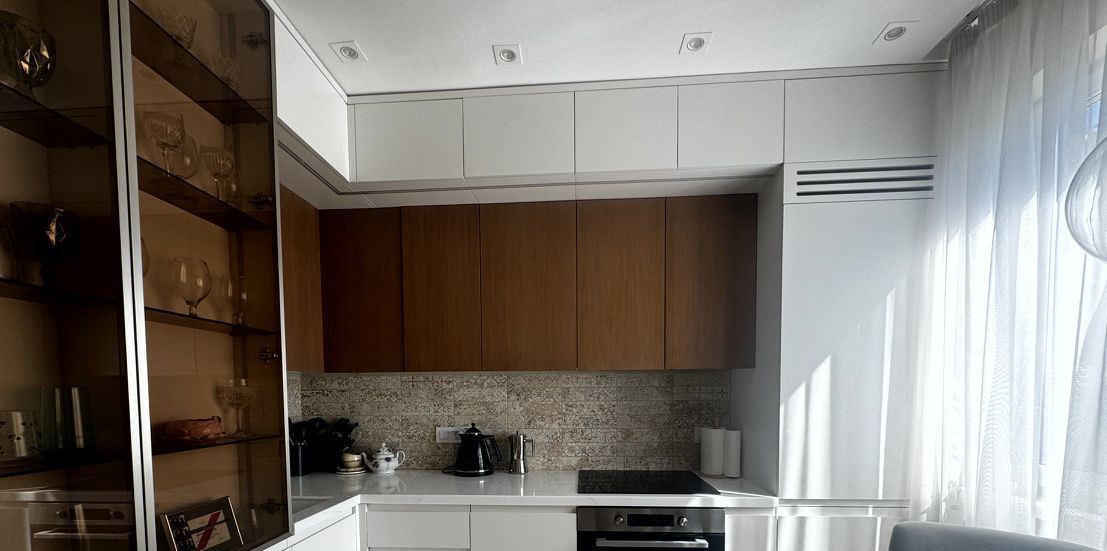 - техника от производителей Bosch, Elextrolux, Mitsubishi, Weisgauf, IKEA (стирально-сушильная машина, посудомоечная машина, вытяжка, варочная панель, духовой шкаф с СВЧ, двухкамерный холодильник, две сплит-системы);