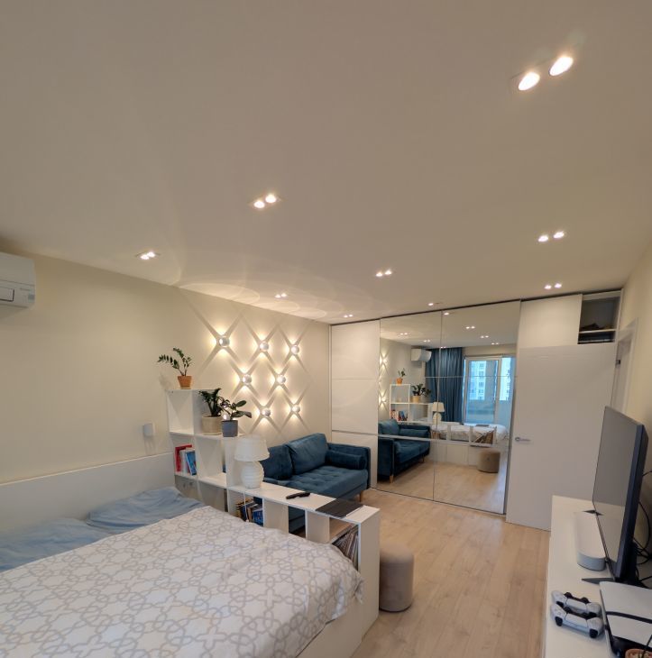В 2021-2022 гг. сделан качественный и современный капитальный ремонт по разработанному дизайн-проекту. Заменены все коммуникации, установлены новые окна, радиаторы, сантехника и вся мебель, осуществлена согласованная с МосгорБТИ перепланировка (объединение санузла, установка сдвижного панорамного окна в большой комнате, перенос радиатора отопления и некоторые менее значительные изменения).