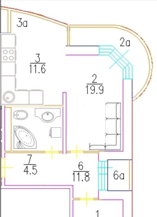 Планировка: Большая кухня-гостиная, спальня, большой санузел, три лоджии.