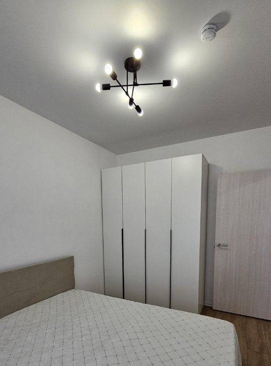 В спальне новая удобная кровать, матрас, шкаф, смотнированы карнизы и шторы блэкаут.