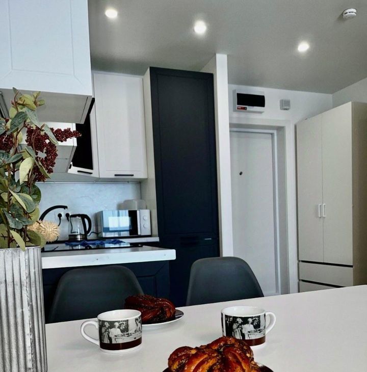 Квартира оборудована всей необходимой техникой для комфортного проживания. Современный дизайнерский ремонт создает уютную и стильную атмосферу, где каждый элемент интерьера подобран с любовью к деталям.