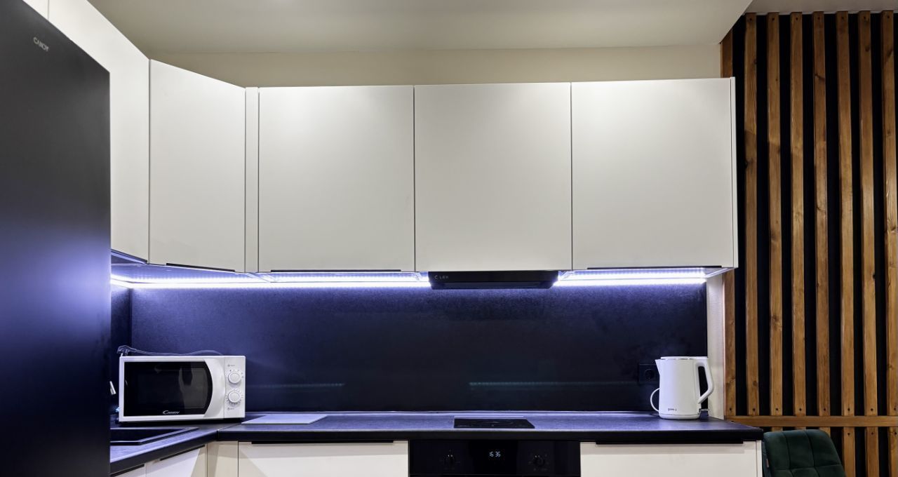 Наполнение продумано собственником до МЕЛОЧЕЙ! Полностью меблированная квартира! Кухня оборудована техникой. А именно: варочная панель, вытяжка, духовой шкаф, СВЧ, чайник и вместительный холодильник. Кухня-гостиная с удобным раскладным диваном, оборудованная ТВ-зоной. В спальне комфортная двуспальная кровать с подъемным механизмом и системой хранения. Много места для хранения ваших вещей. В квартире установлен кондиционер, будет комфортно в любую погоду.