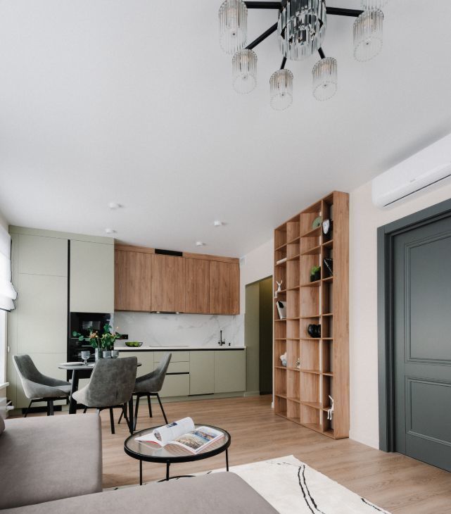 Просторная кухня-гостиная с ТВ зоной, - телевизор смарт-тв, диван раскладной, подключен Wi-Fi. Кухня оснащена посудомоечной машиной, духовым шкафом, свч, вытяжкой. Установлен фильтр для воды. Есть электрический чайник, а так же новый набор посуды.