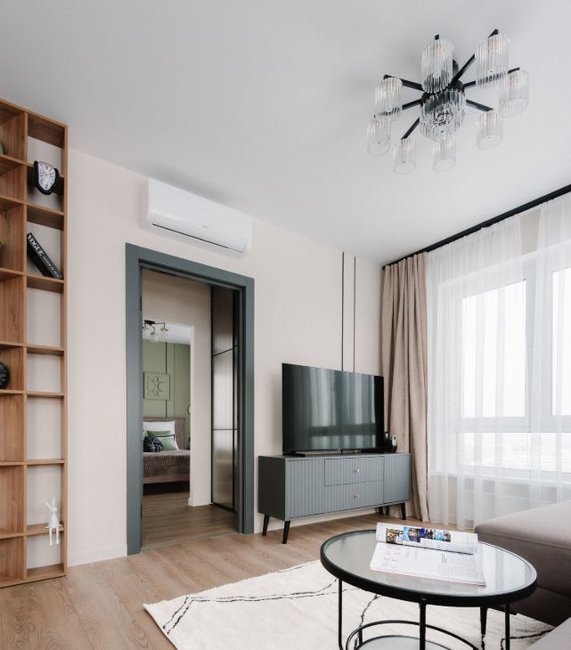 В квартире 2 зеркала в полный рост, в спальне есть консоль, которую можно использовать как рабочее место. Видео-домофон с управлением через телефон. Дает дистанционное открытие дверей для курьеров и гостей. Район разнообразен своей инфраструктурой и при этом является зеленым районом! Рядом с ЖК много парков, самый ближайший это парк вдоль реки Яуза - самый длинный парк в Европе, там можно гулять весь день, есть пешеходные тропы и велодорожки.