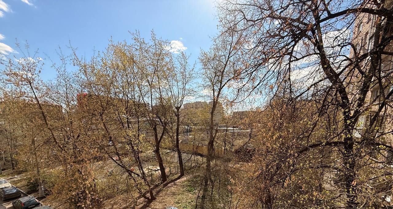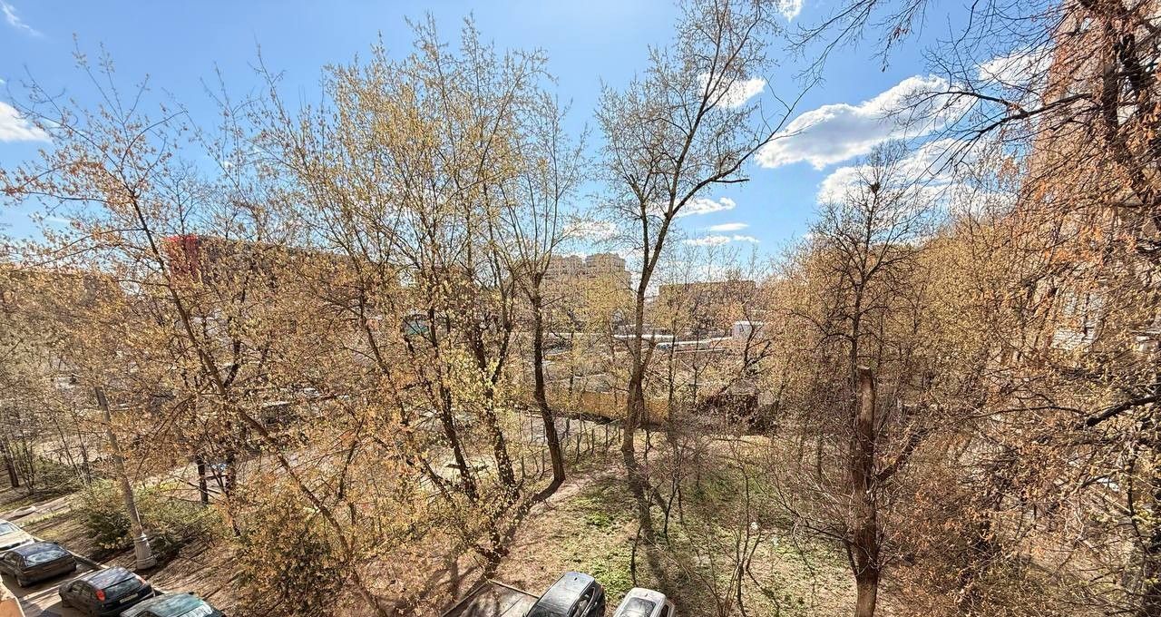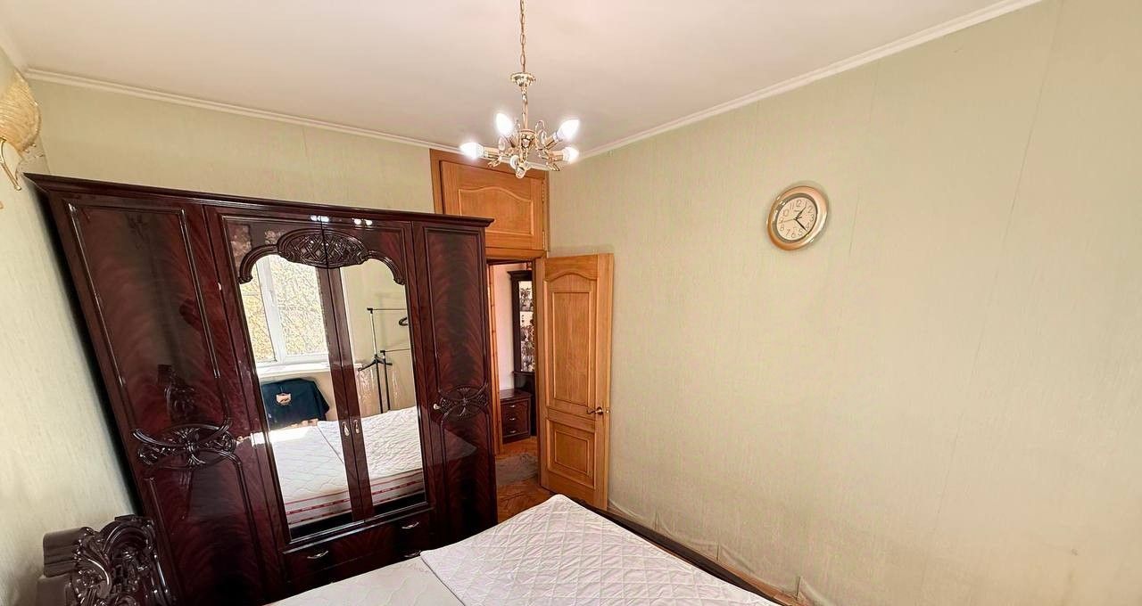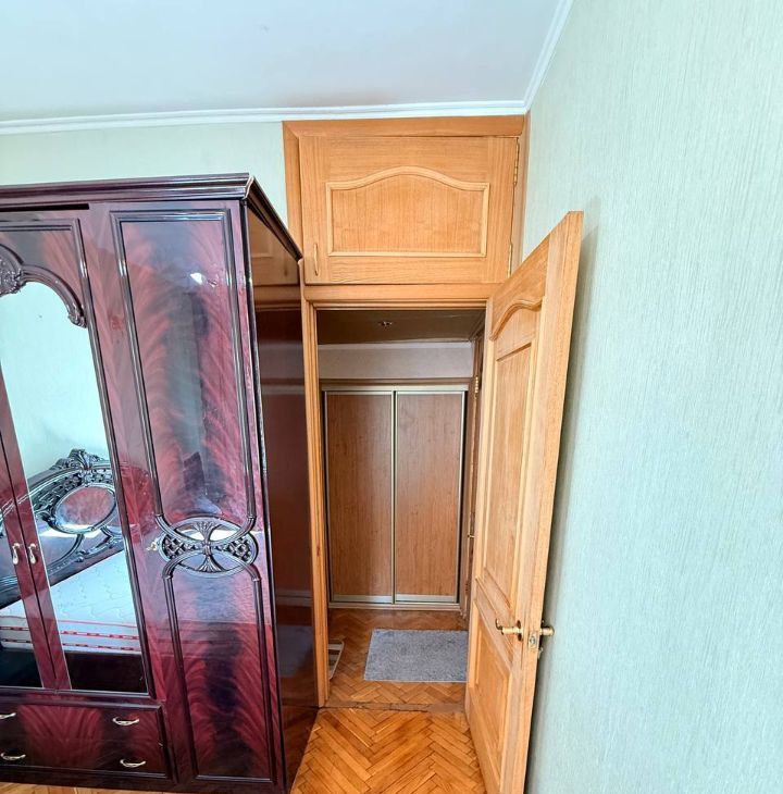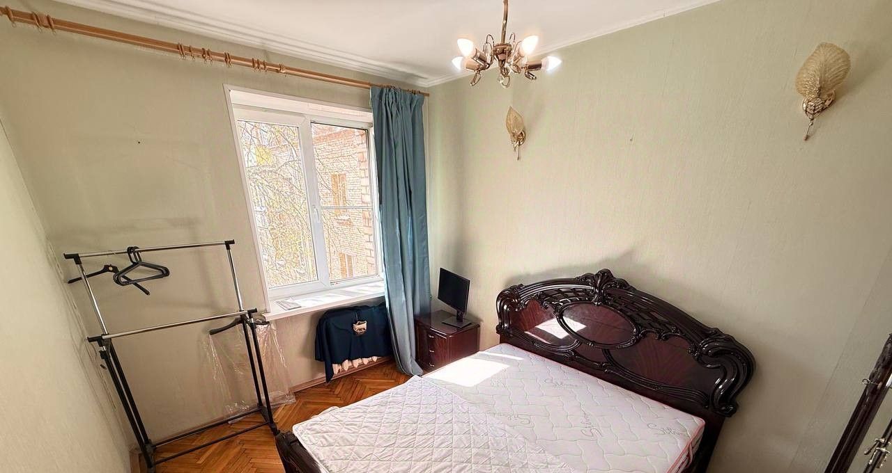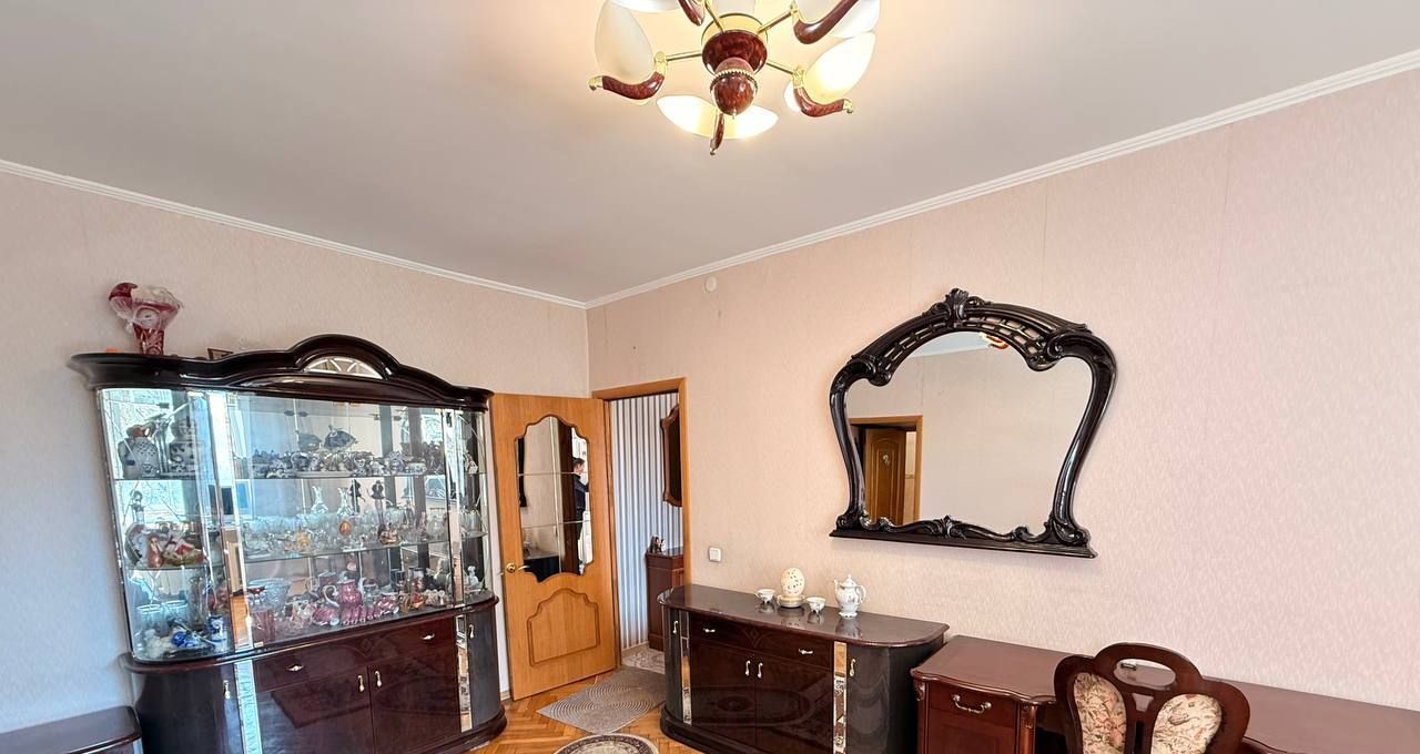 Гостиная: Итальянский кожаный раскладной диван, рабочий стол. Кондиционер. Из гостиной выход на застекленный балкон. Окна выходят в тихий двор.