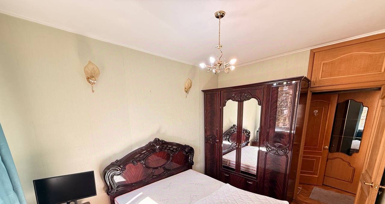 В спальне: двуспальный кровать с ортопедическим матрасом. Шкаф.