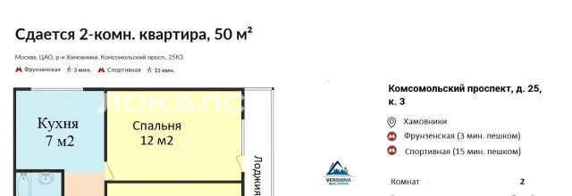 2-к кв. Москва Комсомольский просп., 25К3 (52.0 м²)