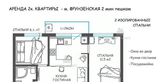 АРЕНДА 2 к. КВАРТИРЫ - м. ФРУНЗЕНСКАЯ 2 мин пешком !