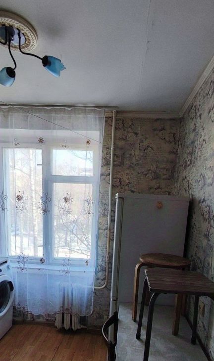 Окна выходят во двор, поэтому в квартире всегда тихо и спокойно. Из мебели и техники есть всё необходимое: на кухне — гарнитур и обеденный стол, в комнате — удобный диван и шкафы. Из техники — холодильник и стиральная машина. Ванная комната оборудована полноценной ванной.