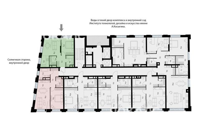 Уникальная по планировке и расположению, относительно к солнцу и свету, 2-комнатная квартира в корпусе "Сад", на рынке недвижимости в ЦАО. "Сад" отличается тишиной и атмосферой уединения, именно в нем расположена приватная зона отдыха "Тайный сад" так напоминающая камерные дворики в стиле "Римского искусства"