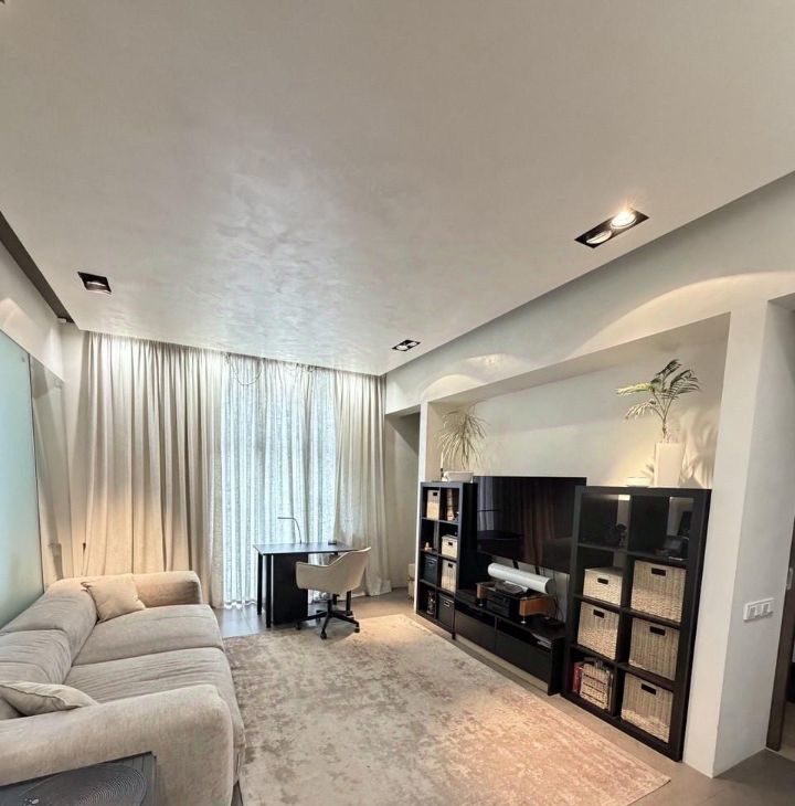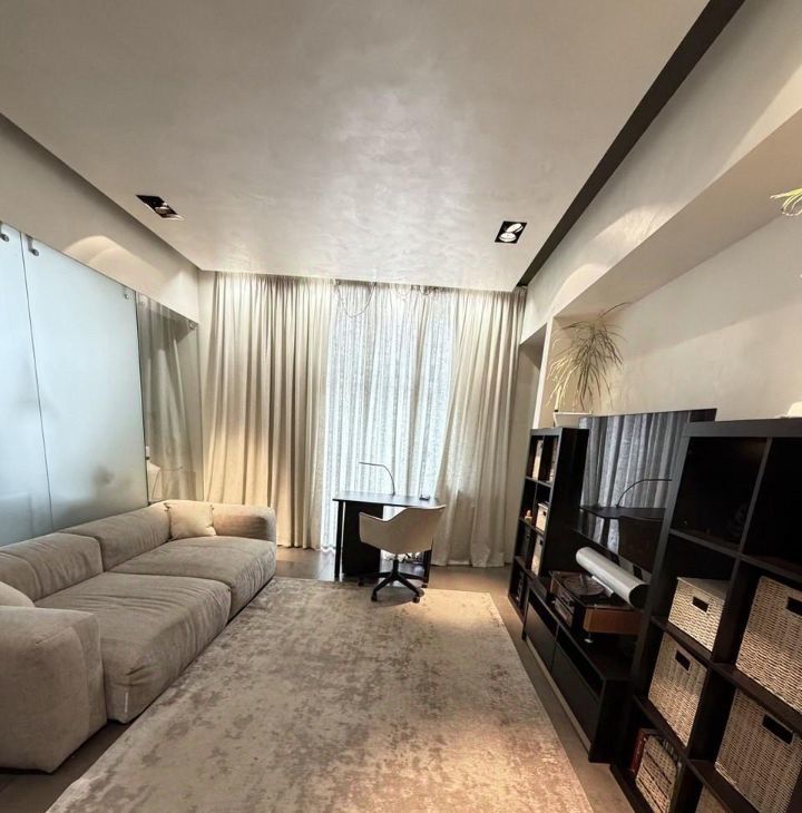 Планировка: Современный дизайнерский ремонт из премиальных материалов. Продуманное пространство с большими местами для хранения и балконом. Площадь — 54,8 м².