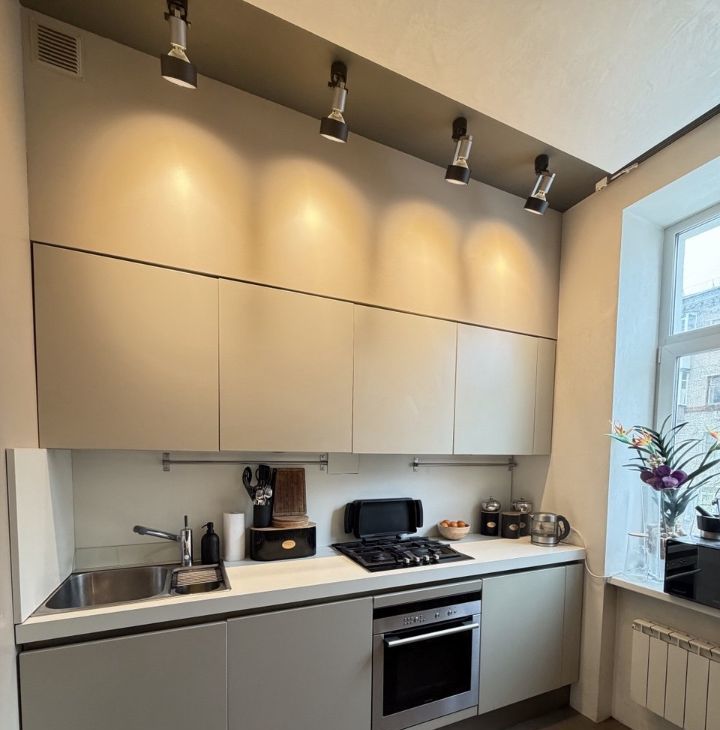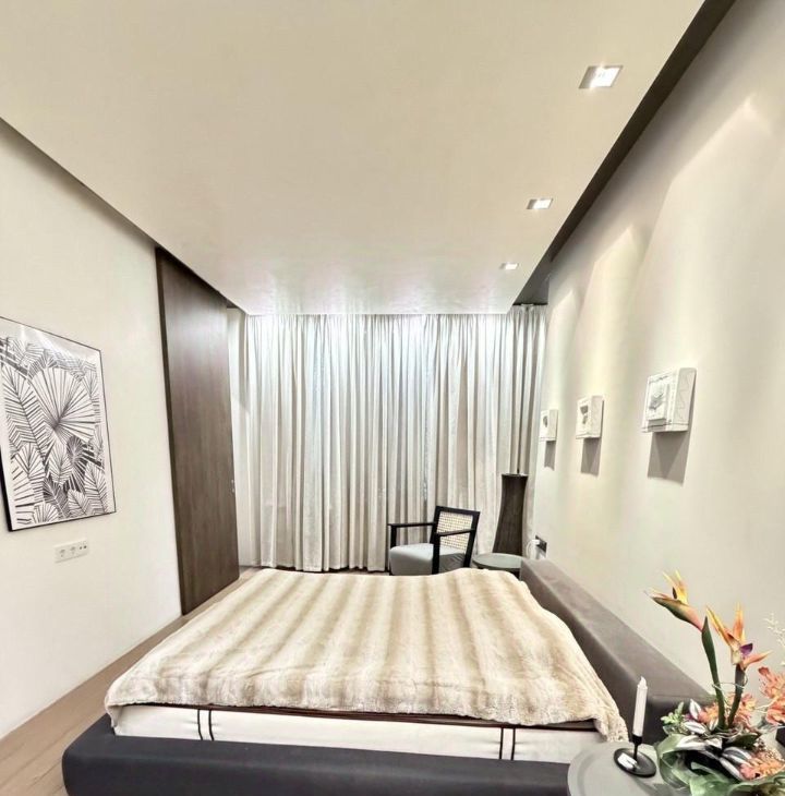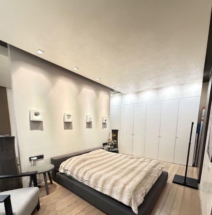 Кухня оснащена премиальной техникой Siemens (холодильник, газовая плита, духовой шкаф, посудомоечная машина). Также в распоряжении: микроволновка, гриль, мультиварка. Для отдыха — большой телевизор LG и стабильный Wi-Fi. В спальне матрас King Koil.