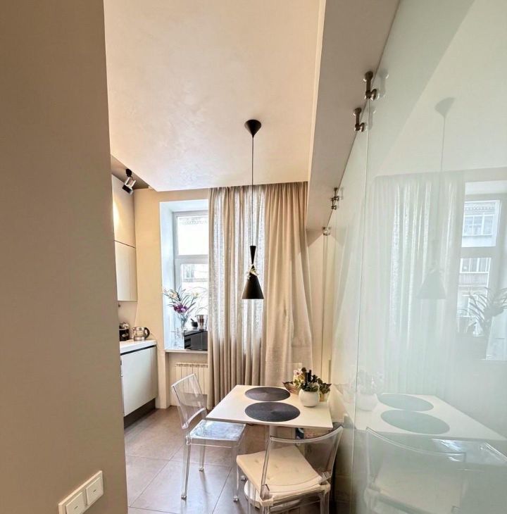Свет и атмосфера: Окна выходят в тихий переулок, солнце заглядывает в первой половине дня. В квартире всегда светло и тихо.