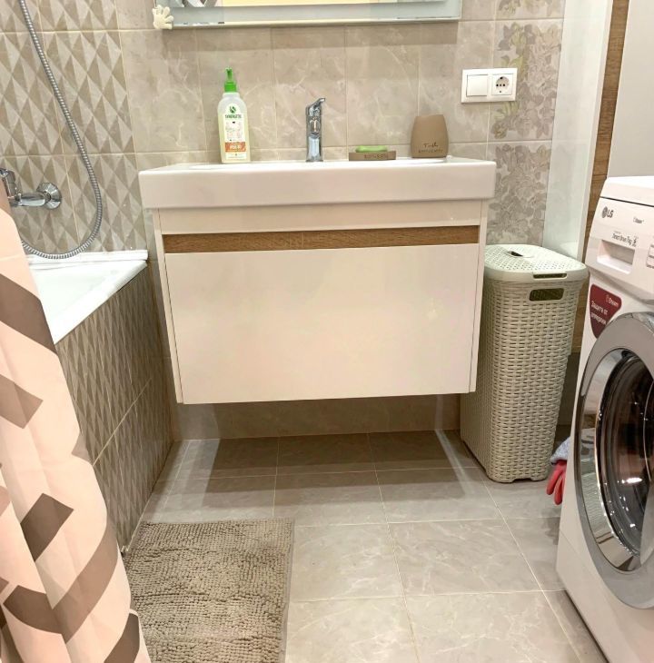 • Отдельный санузел — полностью облицован плиткой, дополнительный умывальник.