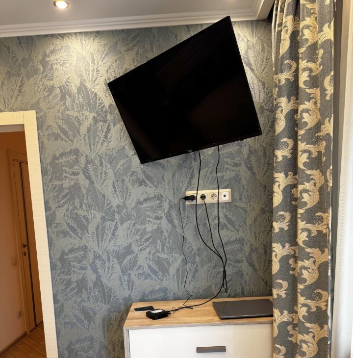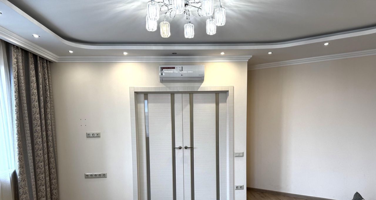 • Гостиная (25 кв. м) — светлая комната с двумя большими окнами и кондиционером, приятный вид из окна.