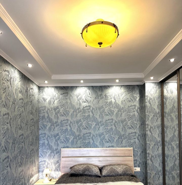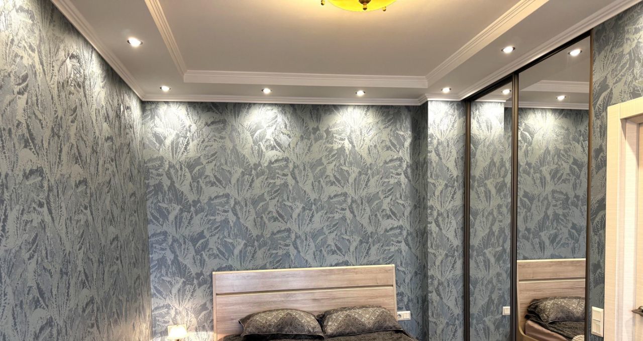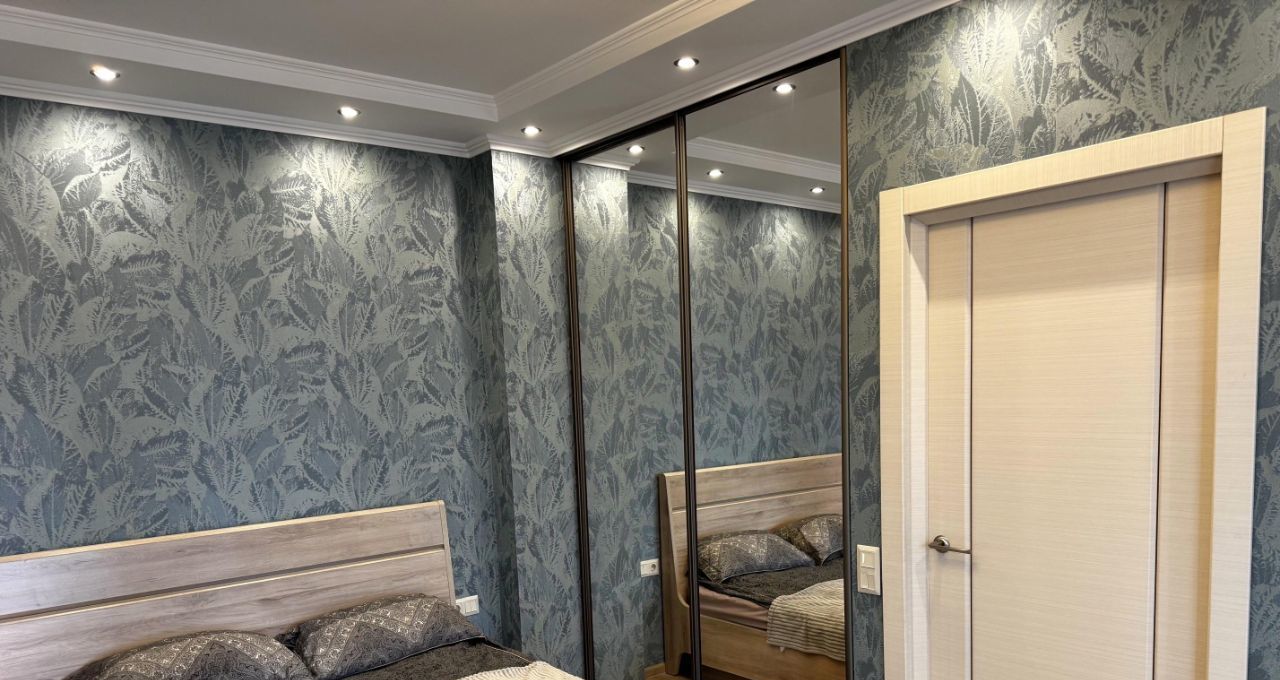 • Спальня (14,5 кв.м.) — комфортная двуспальная кровать, большой платяной зеркальный шкаф, телевизор, выход на остеклённый балкон с панорамными окнами.
