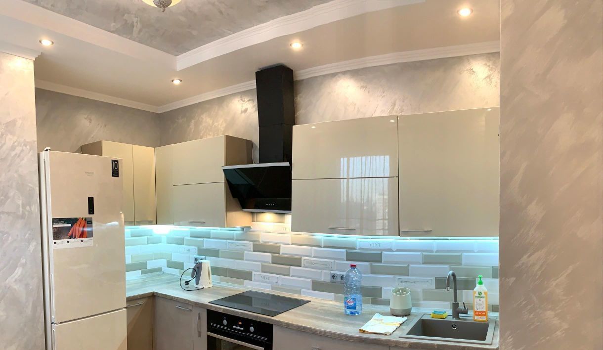 • Кухня (10,5 кв.м.) — современная практичная мебель, естественное освещение, вид во двор.