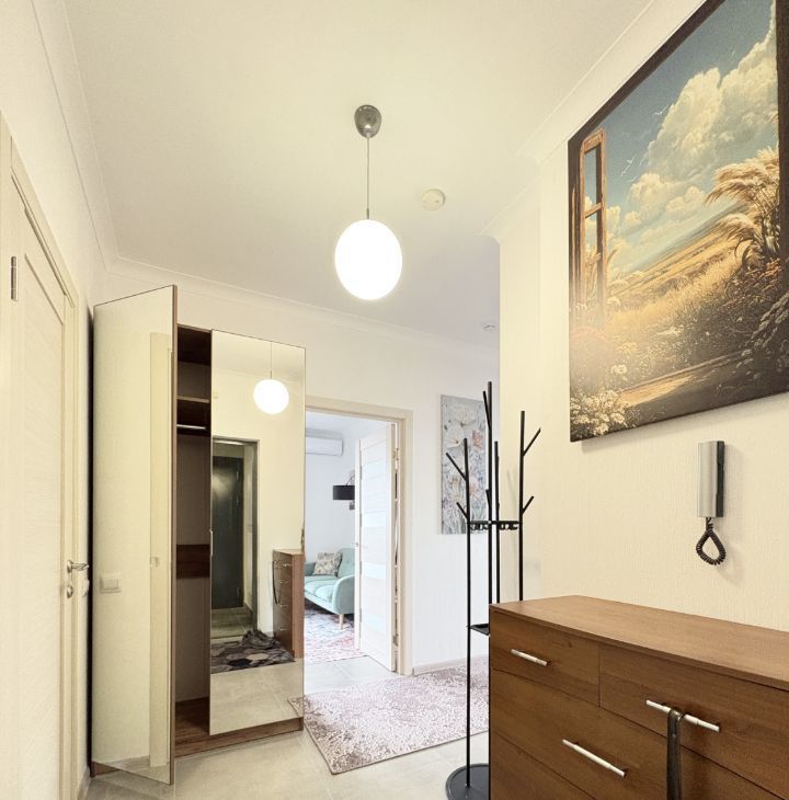 В первые сдается 2х к.кв. в новом и современном доме с подземным паркингом. Две отдельные комнаты и кухня-гостиная. Квартира меблирована. Есть все необходимое для проживания. Все представлено в фотогалерее. Кондиционер. Большая лождия. Два с/у. Новый ремонт, новая мебель. Дом недавно заселился, но все квартиры передавались с отделкой, поэтому нет шума от ремонтов.
