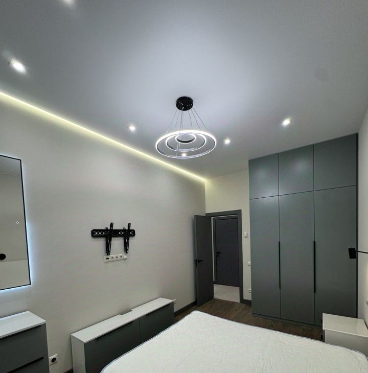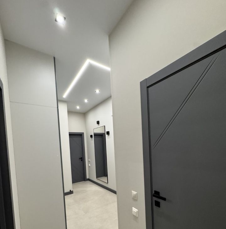Установлен телекоммуникационный шкаф, сделана разводка RJ 45 розеток к всем рабочим зонам и зонам Тв и акустические розетки под домашний кинотеатр в спальне. В мокрых зонах датчики- Нептуны (система антипротечки). Теплый пол.
